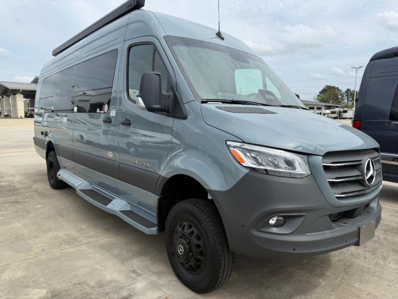 Sleeps 2 Length 24 ft 3 in Ext Width 6 ft 11 in Ext Height 9 ft 6 in Int Height 6 ft 2 in Interior Color Cashmere, Fog, Onyx, New Ginseng (Copper) Exterior Color Arctic White, Brilliant Silver Hitch Weight 5000 lbs GVWR 11030 lbs Fresh Water Capacity 27 gals Grey Water Capacity 22 gals Black Water Capacity 26 gals Generator Onan QG 2500 LP Quiet Fuel Type Diesel Engine 2.0L Turbo I4 Diesel Chassis Mercedes 3500 Ext Fuel Capacity 24 gals Wheelbase 170 in Refrigerator Type Nova Kool 7300 Cooktop Burners 2 Number of Awnings 1 Axle Weight Front 4410 lbs Axle Weight Rear 7720 lbs LP Tank Capacity 51 lbs Water Heater Type Truma Combi Eco Plus AC BTU 13500 btu TV Info 24" LED Smart TV Awning Info 13' 1" Gross Combined Weight 15250 lbs Shower Type Wet/Bath Shower Electrical Service 30 amp Solar Wattage 330 watts