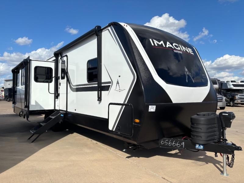 Taking home one of these Grand Design Imagine travel trailers for sale in Texas and New Mexico is an excellent way to get the most out of your vacations with your family. These RVs feature large panoramic windows, residential countertops, and upgraded residential furniture to ensure you stay comfortable anywhere. The lightweight design makes it easy to tow and offers plenty of sleeping space for you and your kids. These Grand Design Imagine travel trailers for sale in Texas and New Mexico are the perfect way to give your family comfort and luxury at the campground.