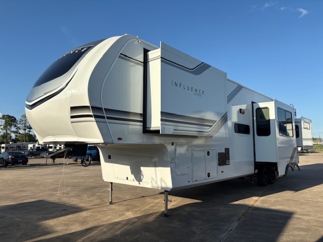 Any Grand Design Influence fifth wheel features five-sided aluminum cage construction with a walk-on roof and a fully enclosed underbelly with heated tanks and storage for all weather camping. For peace of mind, the MORryde CRE3000 Suspension system will provide safe and smooth towing, and the 101" widebody construction offers all the room you need and that is before multiple slides are fully engaged. You will appreciate the Keyed-Alike locks, slam-latch baggage doors with magnetic door catches, exterior security light, and SolidStep entry steps. On the inside, Congoleum flooring, premium roller shades for privacy, a hallway handrail for safety, and nightstands with USB ports to keep all of your electronics fully charged. You will also love the On Demand tankless water heater when showering, plus the added heat and ambiance from an electric fireplace, and so much more!
