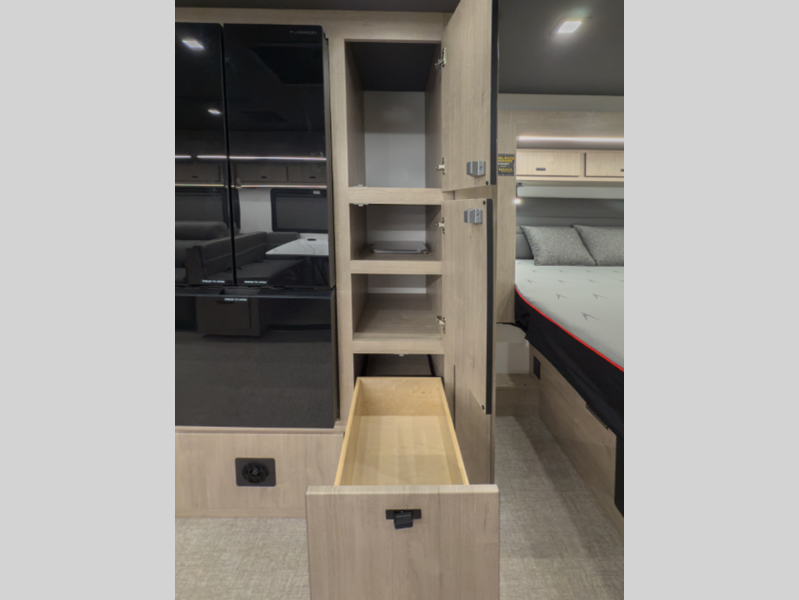 Sleeps 5 Slides 2 Length 33 ft 9 in Ext Width 8 ft 4 in Ext Height 12 ft 3 in Int Height 6 ft 9 in Exterior Color Full Body Paint Choices Hitch Weight 15000 lbs GVWR 22000 lbs Fresh Water Capacity 79 gals Grey Water Capacity 66 gals Black Water Capacity 45 gals Tire Size LT245/70 Furnace BTU 30000 btu Generator 8.0 kW Onan Fuel Type Diesel Engine 6.7L 4V 8-Cylinder Chassis Ford F-600 4x4 Horsepower 330 hp Fuel Capacity 66.5 gals Wheelbase 245 in Number Of Bunks 1 Available Beds King Torque 950 ft-lb Refrigerator Type 12V Refrigerator Size 10 cu ft Number of Awnings 1 Axle Weight Front 7500 lbs Axle Weight Rear 15500 lbs LP Tank Capacity 20.3 gals. Water Heater Type Tankless AC BTU 15000 btu TV Info Ext. 40" 12V Smart TV Awning Info 13' Girard Armless Awning with Wind Sensor Washer/Dryer Available Yes Gross Combined Weight 43500 lbs Shower Type Standard Electrical Service 50 amp Solar Wattage 900 watts Similar Floorplans