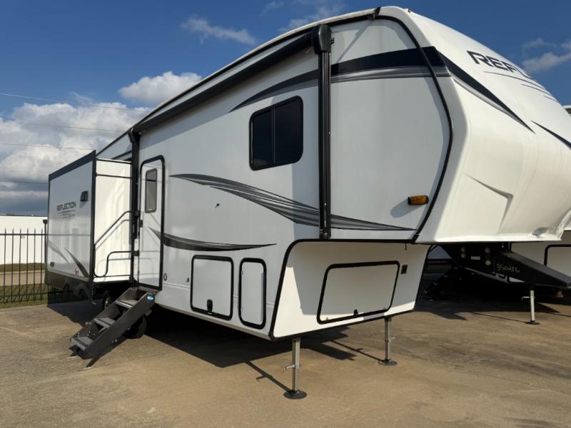 Each Reflection 100 Series fifth wheel by Grand Design is affordable and packed with luxury for unforgettable camping memories! The MorRyde CRE3000 suspension system and Goodyear Endurance tires will provide smooth towing from home to campground. And the solar package with a 180W solar panel, 60 Amp charge controller and 12V refrigerator will allow you to camp for longer periods of time and in more locations! A heated and enclosed underbelly with circulating heat is included in the Arctic 4-Seasons Protection Package, along with a double insulated roof and front cap, and thermofoil insulation under the holding tanks so you can camp all year long if you choose. You will appreciate having an on-demand water heater for hot showers after exploring, and the universal all-in-one docking station will let you monitor your RVs tanks levels and functions with ease. These models also include many luxurious interior features, such as premium Congoleum flooring, pleated shades, residential cabinetry, and matte black fixtures and hardware. Don't let the Reflection 100 Series fifth wheels pass you by!