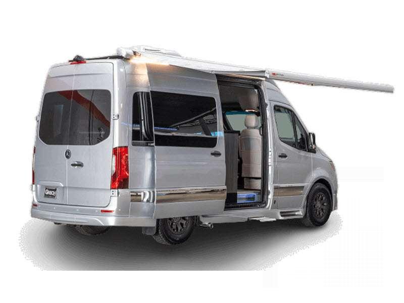 Sleeps 2 Length 19 ft 6 in Ext Width 6 ft 8 in Ext Height 10 ft Int Height 6 ft 1 in Exterior Color Tenorite Grey, Iridium Silver, Grey White Hitch Weight 5000 lbs Fresh Water Capacity 16 gals Grey Water Capacity 26 gals Black Water Capacity 13 gals Fuel Type Diesel Engine Four Cylinder High Output Chassis Mercedes-Benz Sprinter 2500 Horsepower 211 hp Wheelbase 144 in Torque 332 ft-lb Refrigerator Type Refrigerator/Freezer Convection Cooking Yes Cooktop Burners 2 Number of Awnings 1 Water Heater Type Tankless AC BTU 15000 btu TV Info Coach 24" LED TV with Apple TV Awning Info Power with LED Lights Shower Type Wet/Bath Shower Electrical Service 30 amp -