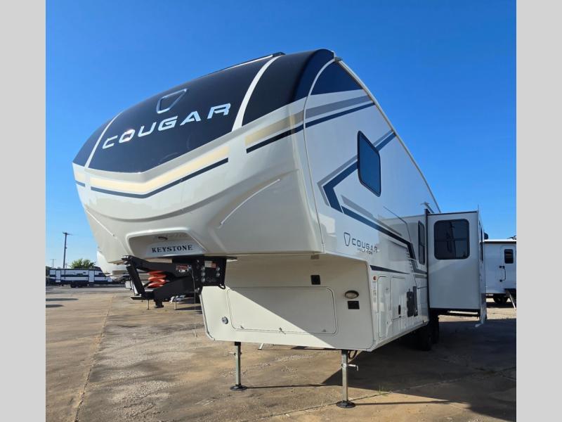 The Keystone Cougar Half-Ton fifth wheel and travel trailers are known as one of America's favorites for a reason! Some of those reasons are the exclusive features that come from Keystone, like the Winegard Air 360+ omni-directional rooftop antenna, the in-floor heating ducts, and the HyperCore composite wall construction with Vixen Fibrogloss high-gloss finish. The Cougar Half-Ton has a Climate Guard protection package with heat-deflecting white sidewalls, two roof attic vents, PEX plumbing and more to enjoy four season camping. Inside, you'll love the dimmable lighting, night roller shades throughout, shower skylight, and bedside USB outlets to keep your electronics charged.