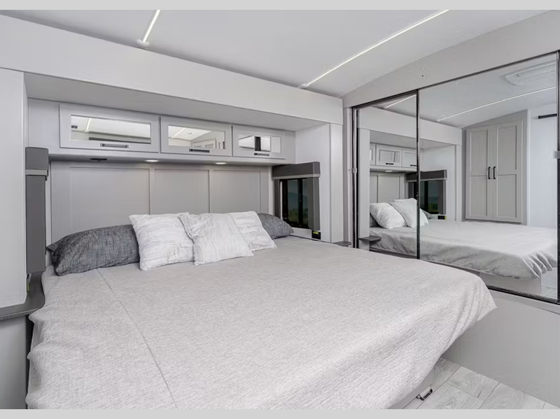 - King size bed w/ built-in pet kennel storage (select models)