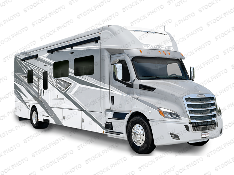 The Renegade Explorer Super C diesel motorhome is a force to be reckoned with! These coaches are built on a Freightliner Cascadia 116 chassis with 525HP and an Allison TRV4000 transmission or Detroit DT12 12-speed transmission. The Explorer's style is very modern and luxurious, and the appliances are top notch.