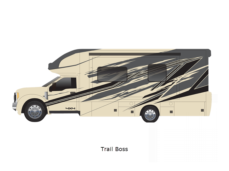 Sleeps 4 Slides 1 Length 30 ft 5 in Ext Width 8 ft 3 in Ext Height 12 ft 1 in Int Height 6 ft 10 in Interior Color Augusta, Bellport, Wilmington Exterior Color Optional Full Body Paint; Boost, Camber, Redline, Trail Boss, Polaris, Tundra, Atlas LR, Mojave Hitch Weight 12000 lbs GVWR 19500 lbs Fresh Water Capacity 75 gals Grey Water Capacity 44 gals Black Water Capacity 44 gals Furnace BTU 35000 btu Generator 8kW Onan Quiet Diesel Fuel Type Diesel Engine 6.7L Power Stroke V8 Turbo Diesel B20 Chassis F-550 Horsepower 330 hp Fuel Capacity 66.5 gals Number Of Bunks 1 Available Beds Murphy Torque 825 ft-lb Refrigerator Type 12V Compressor Refrigerator Size 10 cu ft Convection Cooking Yes Cooktop Burners 2 Number of Awnings 1 LP Tank Capacity 20 gals Water Heater Type Truma Comfort Tankless AC BTU 15000 btu TV Info LR 42" Smart LED TV, Entry 32" Smart LED TV, Ext. 27" LED TV Awning Info Lateral Arm Electric w/LED Lights Shower Type Standard Electrical Service 50 amp Similar Floorplans