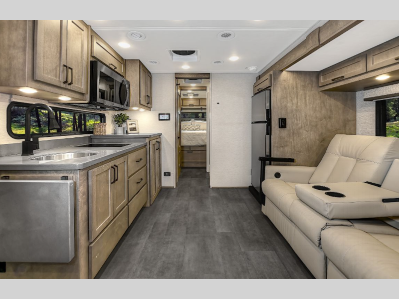 Sleeps 4 Slides 2 Length 32 ft 5 in Ext Width 8 ft 3 in Ext Height 12 ft 1 in Int Height 6 ft 10 in Interior Color Augusta, Bellport, Wilmington Exterior Color Optional Full Body Paint; Boost, Camber, Redline, Trail Boss, Polaris, Tundra, Atlas LR, Mojave Hitch Weight 12000 lbs GVWR 19500 lbs Fresh Water Capacity 75 gals Grey Water Capacity 44 gals Black Water Capacity 44 gals Furnace BTU 35000 btu Generator 8kW Onan Quiet Diesel Fuel Type Diesel Engine 6.7L Power Stroke V8 Turbo Diesel B20 Chassis F-550 Horsepower 330 hp Fuel Capacity 66.5 gals Number Of Bunks 1 Available Beds Queen Torque 825 ft-lb Refrigerator Type 12V Compressor Refrigerator Size 10 cu ft Convection Cooking Yes Cooktop Burners 2 Number of Awnings 1 LP Tank Capacity 20 gals Water Heater Type Truma Comfort Tankless AC BTU 15000 btu TV Info LR 42" Smart LED TV, Entry 32" Smart LED TV, Ext. 27" LED TV Awning Info Lateral Arm Electric w/LED Lights Shower Type Standard Electrical Service 50 amp Similar Floorplans