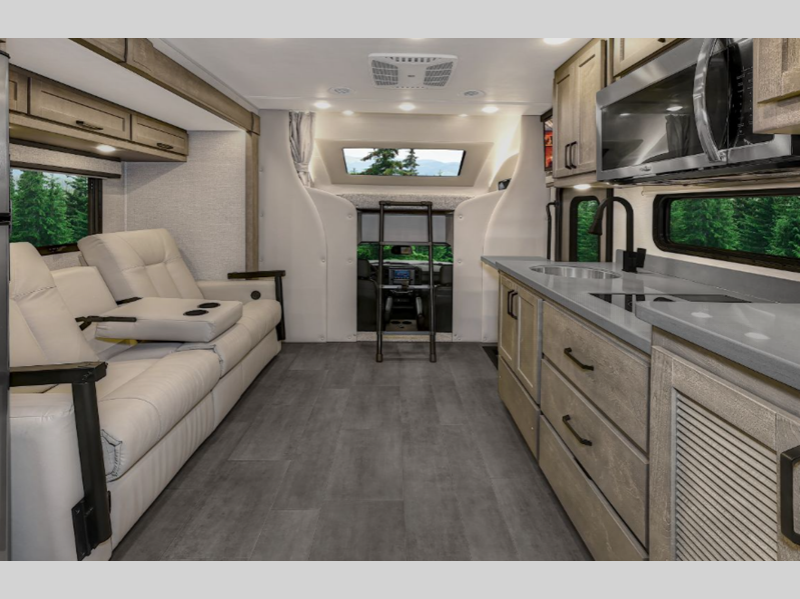 Sleeps 4 Slides 1 Length 32 ft 5 in Ext Width 8 ft 4 in Ext Height 12 ft 1 in Int Height 6 ft 10 in Interior Color Augusta, Bellport, Wilmington Exterior Color Optional Full Body Paint; Boost, Camber, Redline, Trail Boss, Polaris, Tundra, Atlas LR, Mojave Hitch Weight 12000 lbs GVWR 19500 lbs Fresh Water Capacity 75 gals Grey Water Capacity 44 gals Black Water Capacity 44 gals Furnace BTU 35000 btu Generator 8kW Onan Quiet Diesel Fuel Type Diesel Engine 6.7L Power Stroke V8 Turbo Diesel B20 Chassis F-550 Horsepower 330 hp Fuel Capacity 66.5 gals Available Beds Mini-King Bed Torque 825 ft-lb Refrigerator Type 12V Compressor Refrigerator Size 10 cu ft Convection Cooking Yes Cooktop Burners 2 Number of Awnings 1 Water Heater Type Truma Comfort Tankless AC BTU 15000 btu TV Info LR 42" Smart LED TV, Entry 32" Smart LED TV, Ext. 27" LED TV Awning Info Lateral Arm Electric w/LED Lights Shower Type Standard Electrical Service 50 amp Similar Floorplans