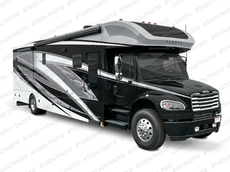 With any Renegade Verona Super C diesel motorhome, you will have confidence to explore the open road! The Cummins 360HP 3200TRV Allison transmission gives you the power and performance to travel anywhere, and the 3000-watt true sine wave inverter makes this an electric coach, plus the aluminum automotive cab construction is designed and tested for occupant protection. The interior boast about the solid hardwood cabinets including every cabinet stile and passage door are made from hardwood for true residential craftsmanship and the articulating cabinet hinges complete the package. More luxurious features include the solid surface countertops, the memory foam mattress, and the wavy patterned fiberglass shower with a glass door. Choose extreme luxury, purpose and durability; take a Verona on the road today!