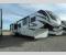 The whole gang will love camping in this spacious fifth wheel for five to six! You'll have your own bedroom up front with a queen bed slide out, a large front closet with a hamper and washer and dryer prep, plus a private entry door into the dual entry bath. Your guest can take the middle bedroom that includes a tri-fold sofa with a bunk above, a dresser/desk, plus a 50" TV for entertainment. A full kitchen includes an L-shaped counter, a 20 cu. ft. refrigerator, pull-out trash cans plus many more convenient features. And don't overlook the rear living area with its L-shaped sofa, theater seating, and free-standing dinette. There is also an entertainment center with a telescoping TV and a fireplace plus an electronics drawer to charge your phone or laptop.