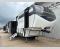 Pack your bags and head to your favorite state park in this four slide out fifth wheel. Up front, the bunkhouse suite includes two bunk beds, a desk, a slide out with a TV hookup, and a half bath for convenience. You'll have the master bedroom all to yourselves with a king bed slide out, plenty of storage, and a full rear bath with dual bath sinks so you both can get ready for bed at once. The chef of your group can make meals on the three burner gas range or in the stainless steel microwave, and food can be stored in the 12V refrigerator and pantry. A booth dinette provides a place to dine, or you can choose the optional free-standing dinette. And the full reclining theater seating across from the fireplace and 50" TV will make movie night cozy!