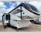 Traveling for long periods at a time is made easy with this gourmet kitchen that can feed your entire group a holiday meal! The professional-grade stainless steel cooktop with a built-in oven, microwave, 12V 20 cu. ft. refrigerator, and a kitchen island offers everything you will need to enjoy cooking for your family and guests. There is abundant storage throughout multiple overhead cabinets, a kitchen pantry and hutch, a bath linen cabinet for your towels, and in the front master bedroom which features a large closet. In the bedroom there is also a queen bed slide for added space to sleep comfortable at night, or you may choose an optional king bed if you enjoy more space. You will also find a closet with washer/dryer prep, large wardrobe, a clothes hamper plus a slide top dresser. Two nice awnings will provide outdoor living space keeping you protected from the sun and rain, and you can add an optional pull-out kitchen to enjoy convenient cooking outdoors as well.